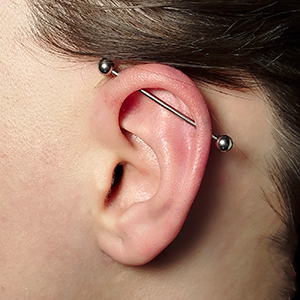 Первые 3-4 дня 2 раза в день удалять загрязнения, выделения вокруг прокола и с украшения Перекисью Водорода: обильно смочить украшение с обеих сторон прокола (снаружи и внутри завитка уха), подождать минуту, смочить ещё раз и сухой ватной палочкой удалить загрязнения.
