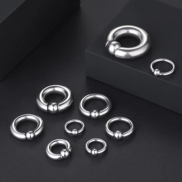 Кольцо с шариком толстое для пирсинга на теле, интимный пирсинг (медицинская сталь)